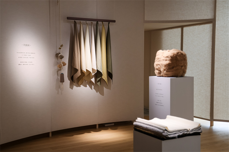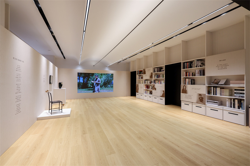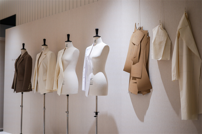 展区内,由全球甄选的天然毛绒、丝麻、牛仔、植物染布与纽扣,共同构筑起质感与起源的材质艺术装置;专为亚洲人身形定制的模特人台,每一道版型的迭代、每一组比例的微调,凝结着对舒适与美学的双重匠心;以花卉为灵感的艺术作品,将女性柔中带刚的生命力注入时尚语境,诠释时装背后独立、坚定又不失柔软的精神内核;陈列的读物与书籍,则延伸出品牌对美学、生活与精神世界的持续丰盈。