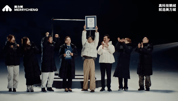 不少行业从业者表示,美力城的实践为服饰行业提供了 “科技 + 标准” 的发展范本:“六维标准” 解决行业规范化问题,携手世界记录保持者李泽川再次打破吉尼斯纪录,科技价值更加具象化。对于消费者而言,这意味着选购高端鹅绒服有了明确依据,无需再为模糊的 “科技溢价” 买单。