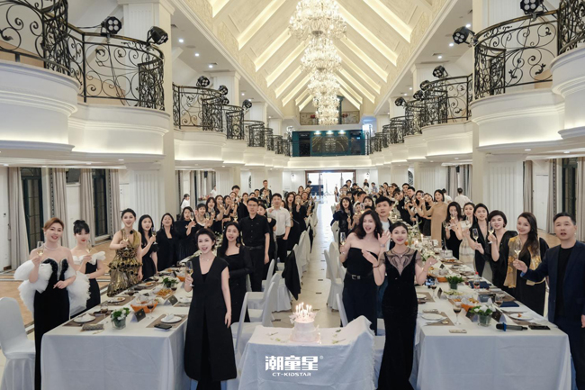 潮童星品牌创始人赵夏女士在主题演讲中强调:"教育的本质是唤醒,商业的本质是创造价值。潮童星以流量思维重构儿童时尚产业,让艺培机构从招生焦虑转向价值输出,这是我们在行业寒冬中逆势增长的核心密码。"还有潮童星自媒体总监周泽豪先生的干货分享!从账号定位到变现闭环,我们看到了流量时代的无限可能!晚宴环节以赵夏女士切开象征品牌硕果的庆典蛋糕,将现场推向情感高潮。乐队演奏、定制美酒与智慧碰撞交织,展现潮童星人既敢闯敢拼又浪漫赤忱的品牌基因。